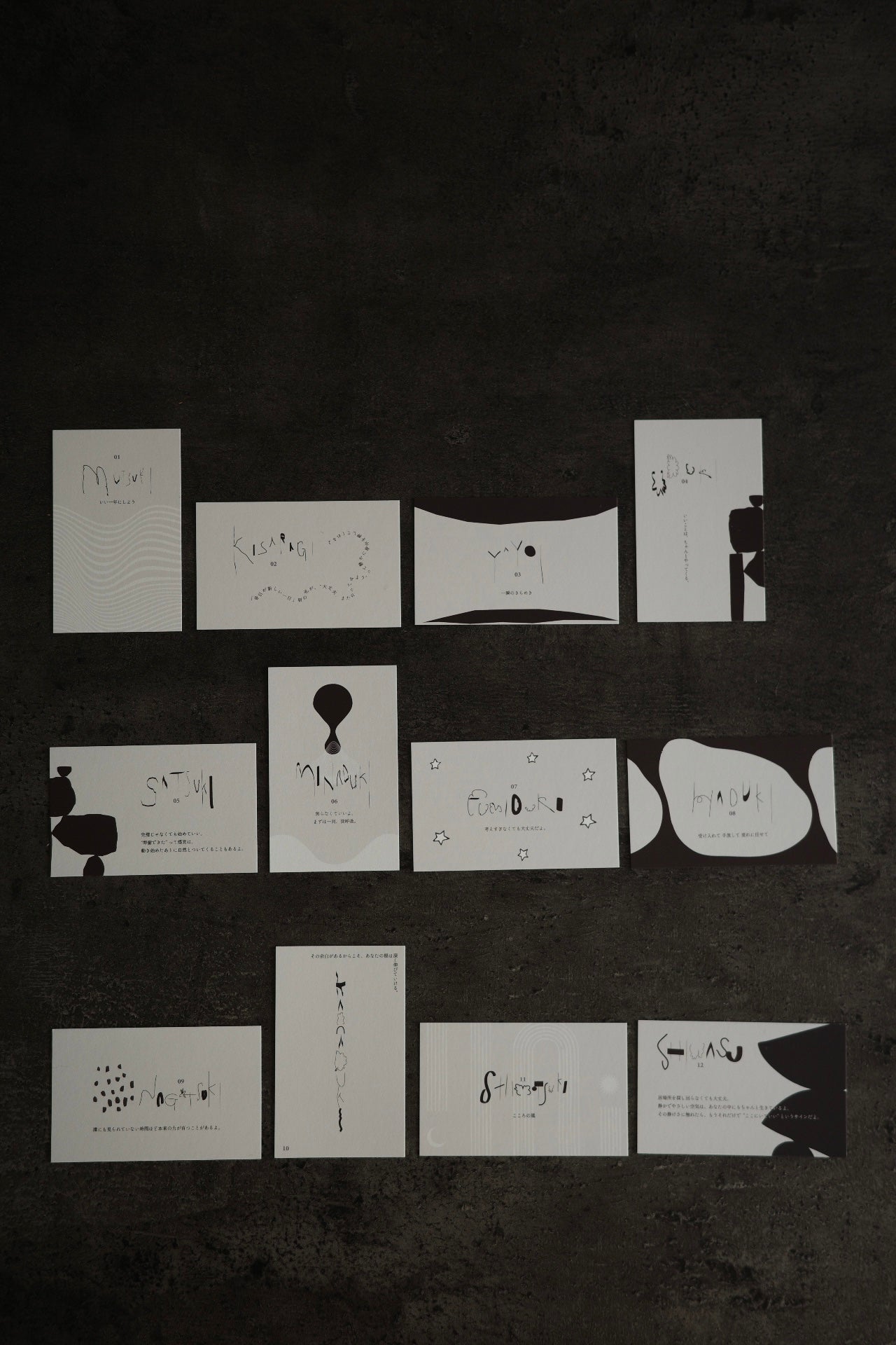 目には見えない変化までも繊細に感じ取って名付けられた和風月名をモチーフにしたグラフィックカード。毎月そっと背中を支えてくれたり押してくれるような応援メッセージ付き♡