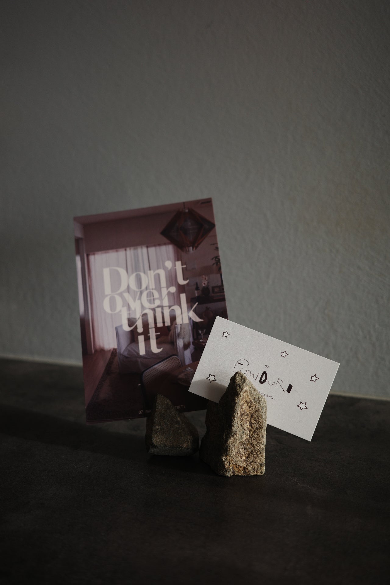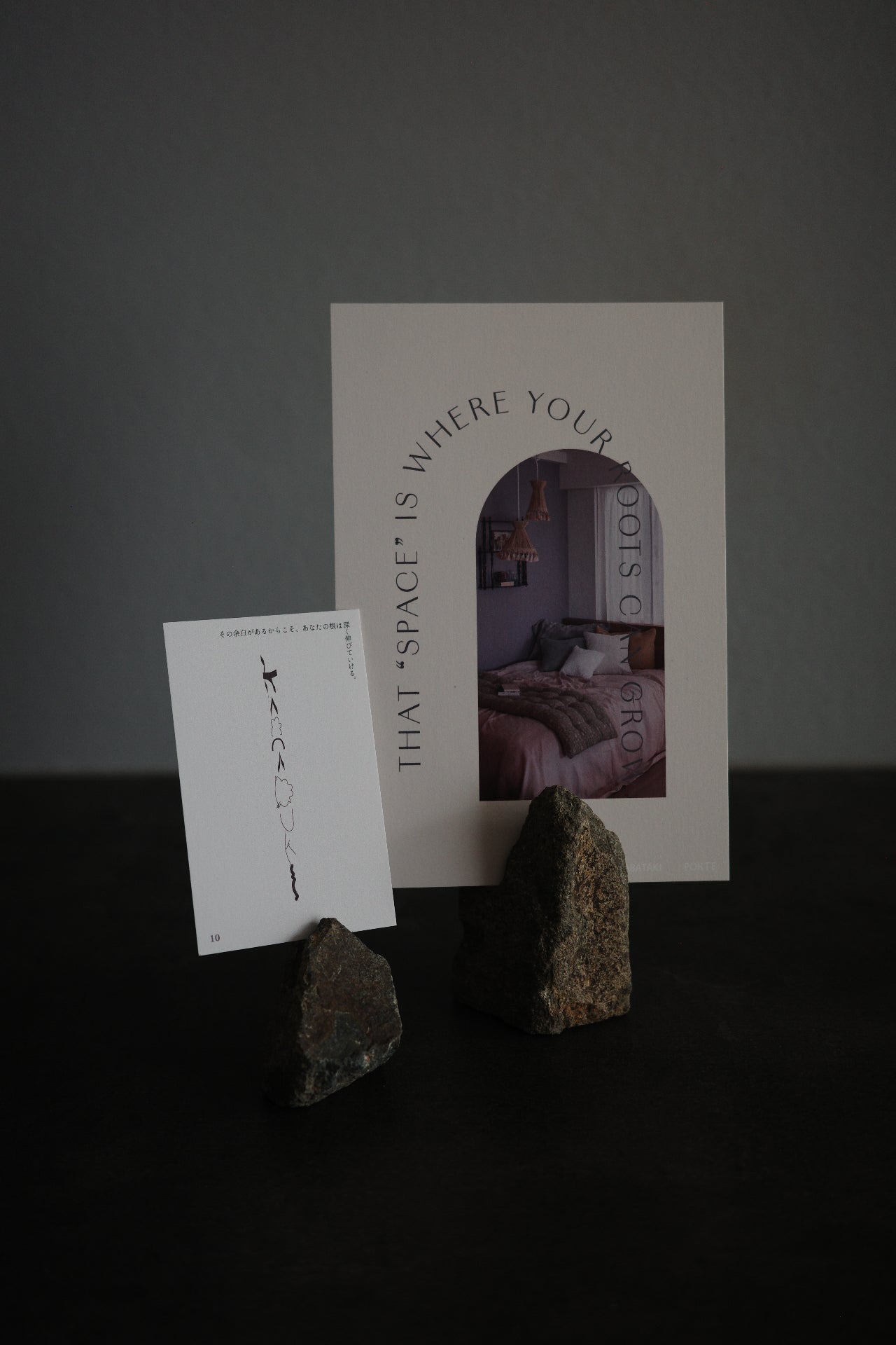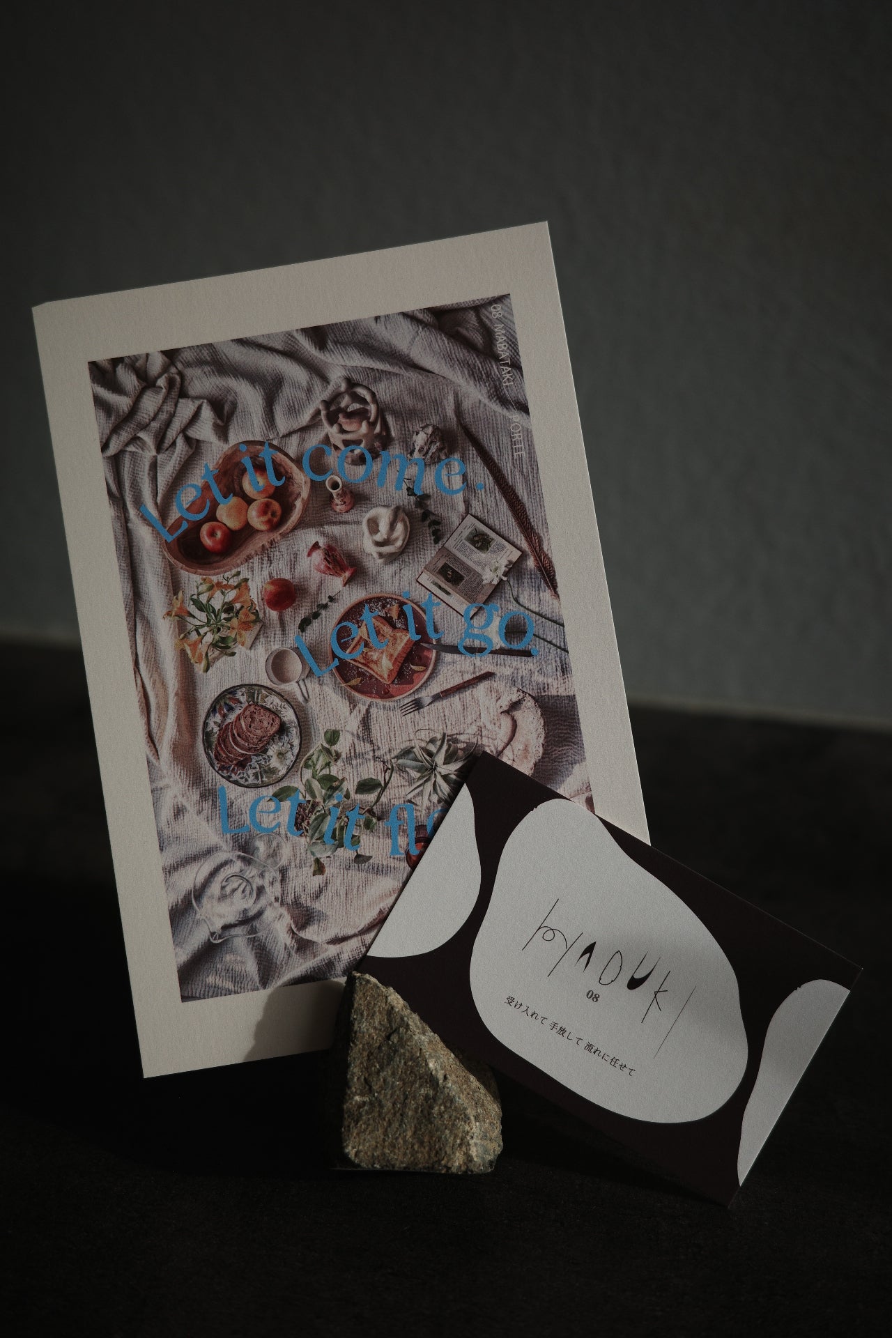 プロップスタイリングフォト×グラフィックを掛け合わせたカード。季(とき)カードのメッセージをグラフィックデザインに変換して制作。