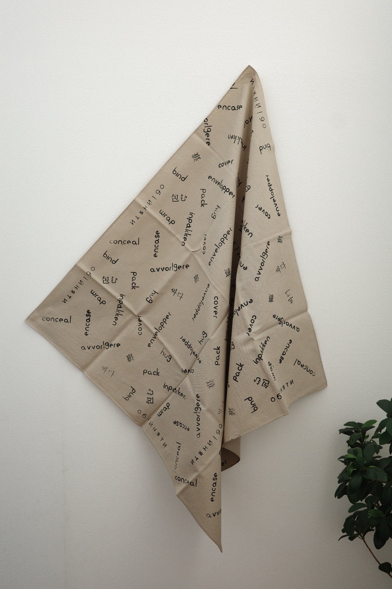 「草木染め×ハンドプリント」の、双方の偶然が生むライブ感。植物の状態やその場の環境によって狙い通りにならない”個性”を、許し受け入れるということも「包む」こと。